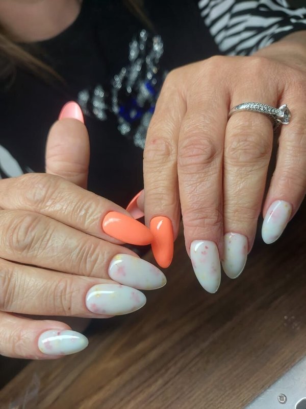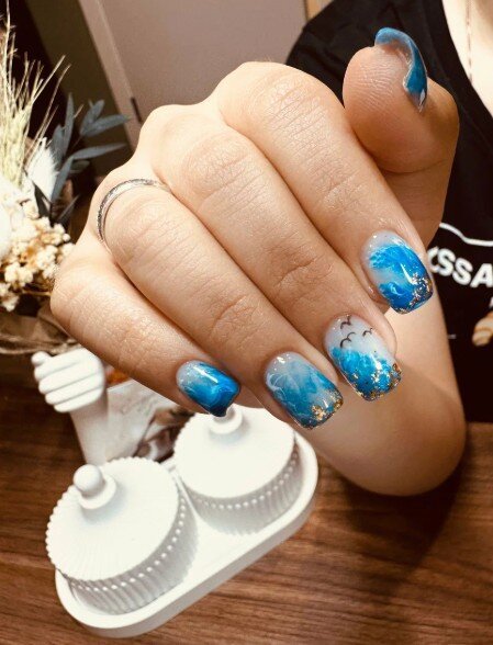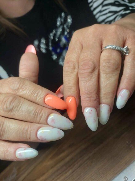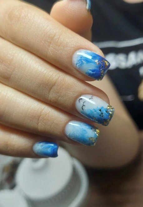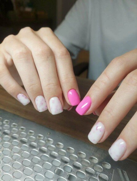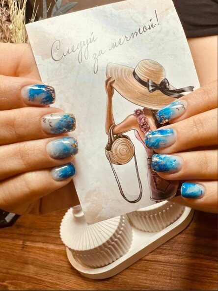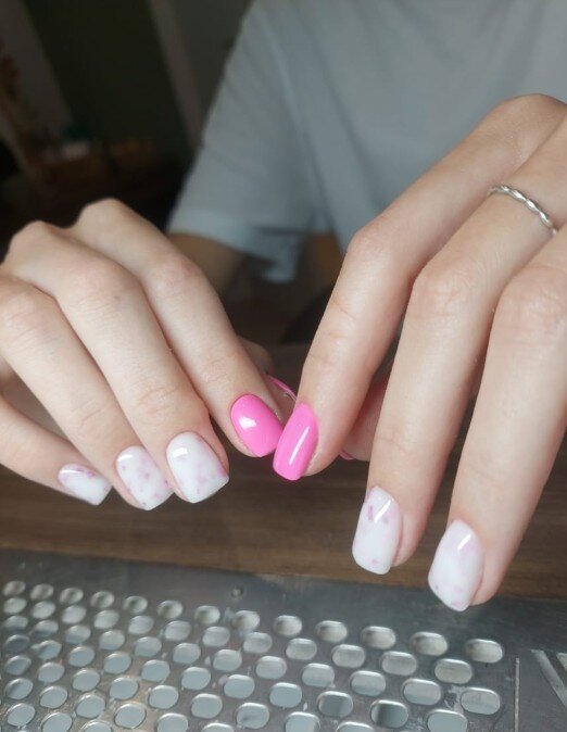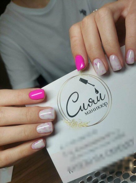 Очень довольна сервисом! Работа выполнена отлично, все было сделано так, как я просила. Никаких порезов или неприятных ситуаций, что часто у меня случается. Сделали ногти с дизайнами, включая градиенты и комбинированный френч с фольгой. Всё получилось красиво.