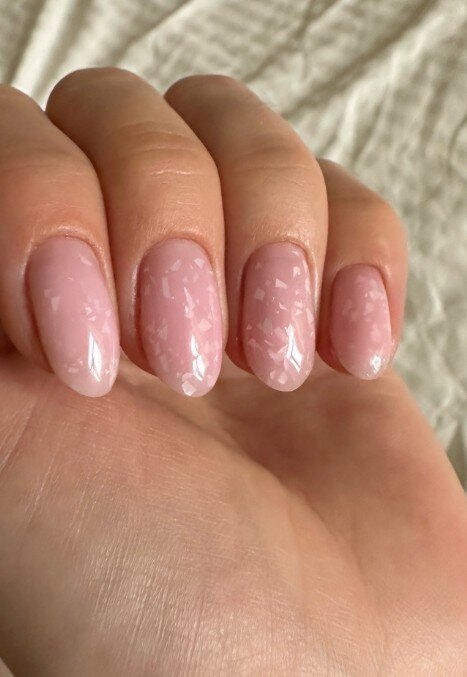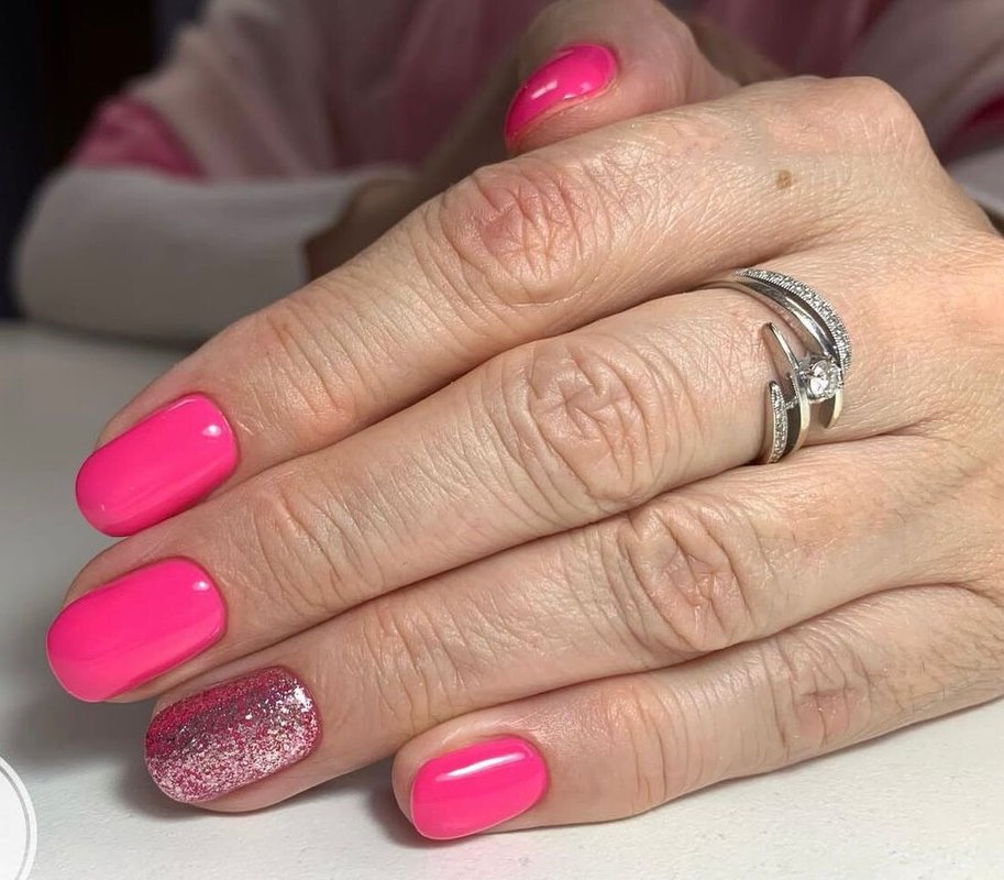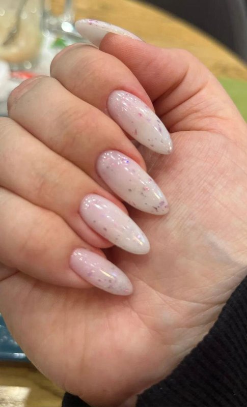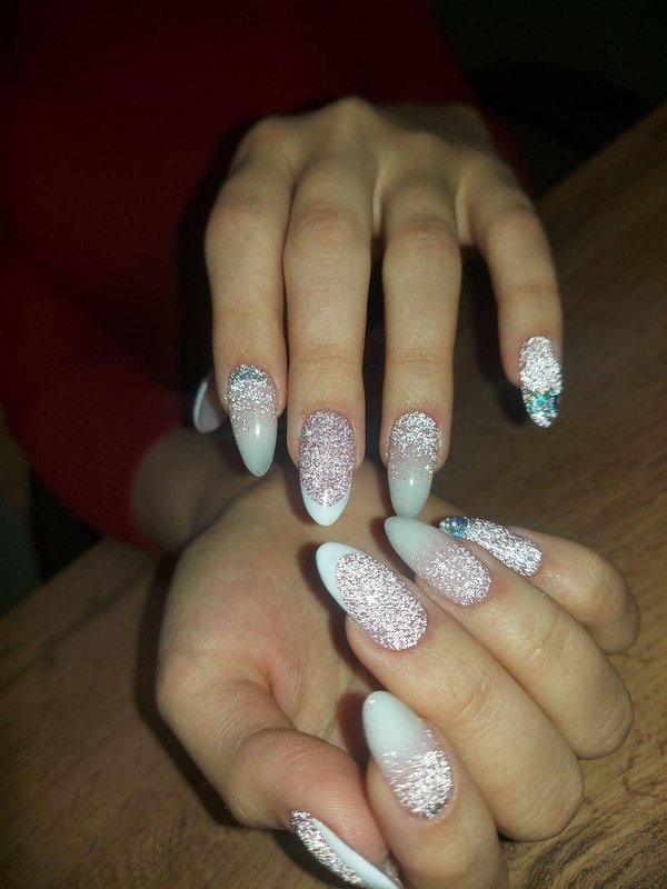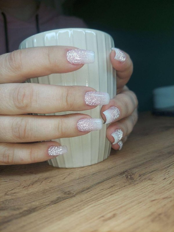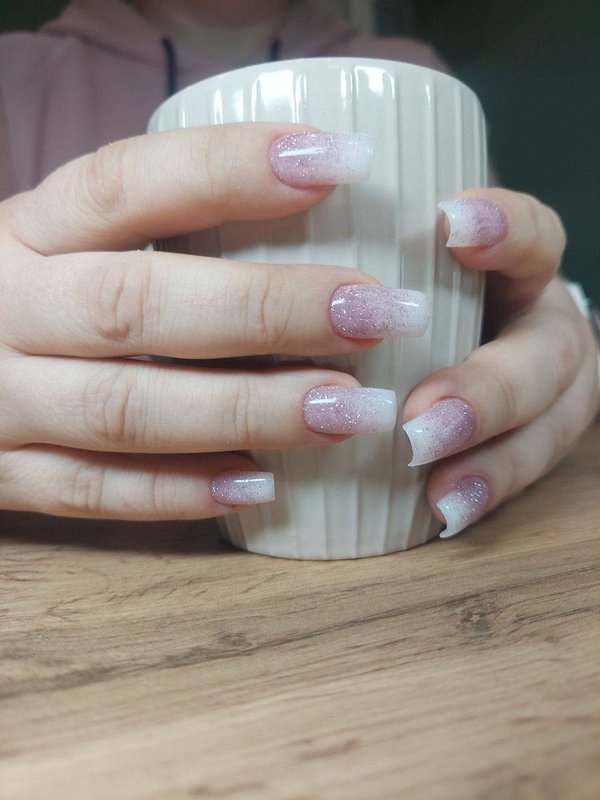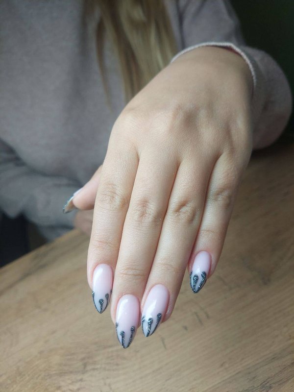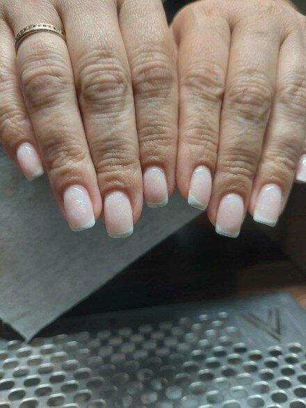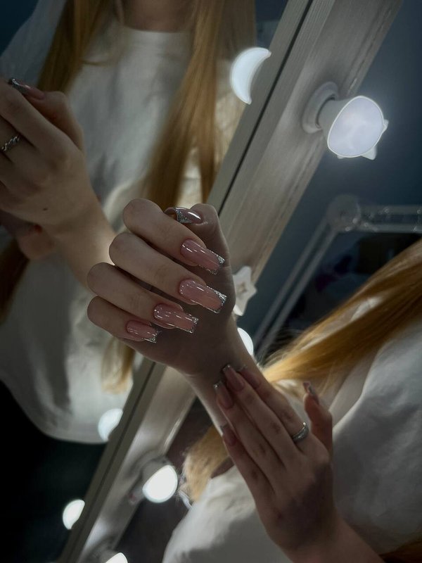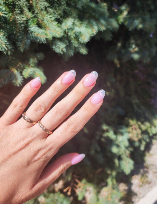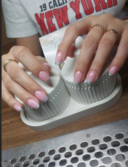 Я достаточно привередливый клиент, но мне нравится мастер в этой студии. Дело в том, что я предпочитаю покрытие шеллаком: база с блестками и френч сверху. При этом есть один нюанс, я прошу оставлять мой натуральный ноготь, чтобы его не отпиливали. Мастер относится к этому нормально, не переубеждает меня, хотя сейчас есть более быстрый способ сделать маникюр: положить платформу и выпилить край, а не пилить свои ногти и пытаться сделать это ровно, ведь они закручиваются.