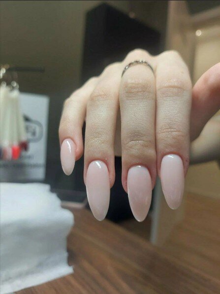 Приятная мастер Алина хорошо выполняет свою работу. Она оказалась общительной, болтала со мной во время процедуры, провела наращивание и придала ногтям овальную форму.
