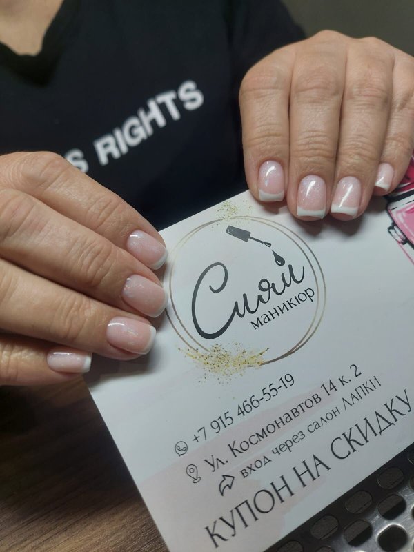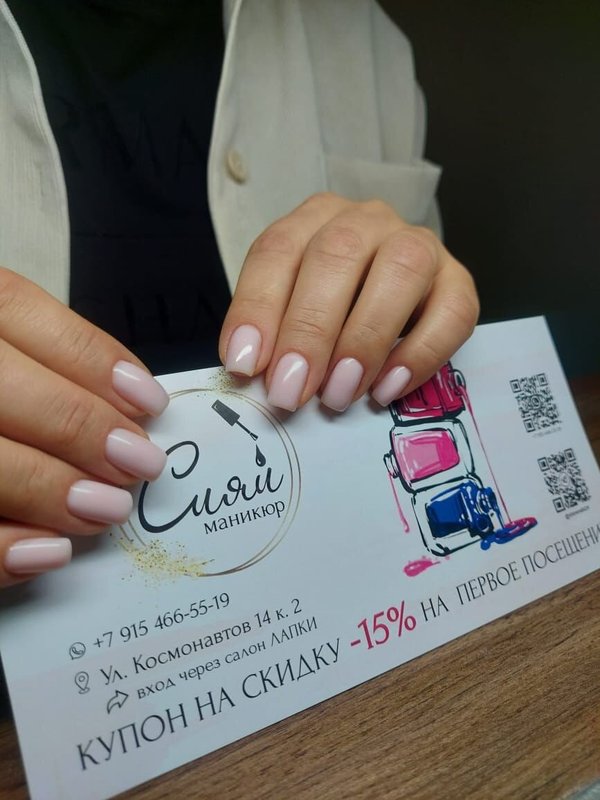 Всё устроило: и сам мастер, и качество услуг. Работа была выполнена очень аккуратно и быстро. Я делала снятие и покрытие гель-лаком с выравниванием и укреплением, выбрала форму «мягкий квадрат» и молочно-белый цвет. Место для маникюра организовано отлично! Для меня важно именно качество маникюра, здесь оно на уровне.